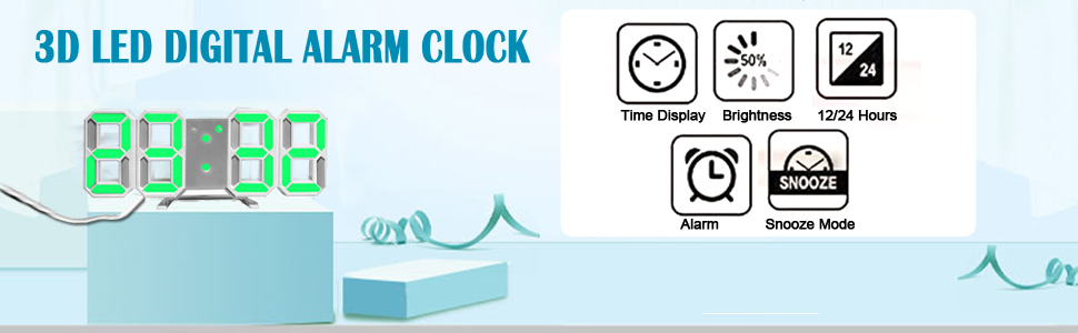 EAAGD Electronic LED Digital Alarm Clock [Upgrade Version] , Clock Can Adjust The LED Brightness Automatically in Night (White/Green)